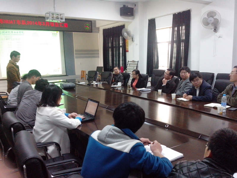 HUAT电车队队长曹昭良汇报了车队队员们在3月份的工作进度,并详细的展示了电车队员三月份的劳动成果,汇报期间队员们所提出的疑问,老师们一一的做了解答,为同学们指点迷津。汤德强副处长说:油车队和电车队是一个整体,队员们要友爱互助,多交流,多沟通,共同解决问题,队员们要历俭节约,控制成本,有问题要及时反馈给老师。