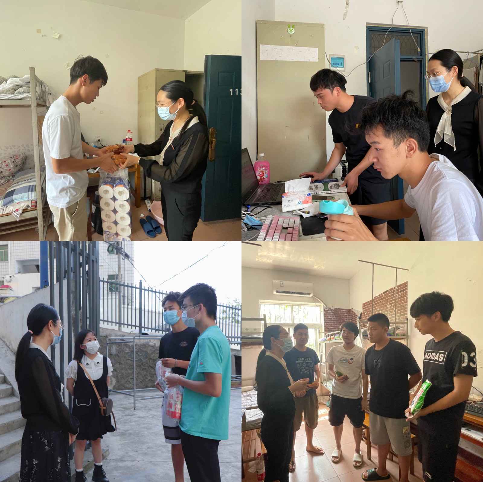 准备的“干粮礼包”,并询问了大家的健康状况和上网课情况。她叮嘱大家在居家监测期间一定要做好防护,戴好口罩,听从安排,要有大局意识,积极配合医护人员完成各项检测任务,并且告诉学生要调整好生活作息,保持良好心态。