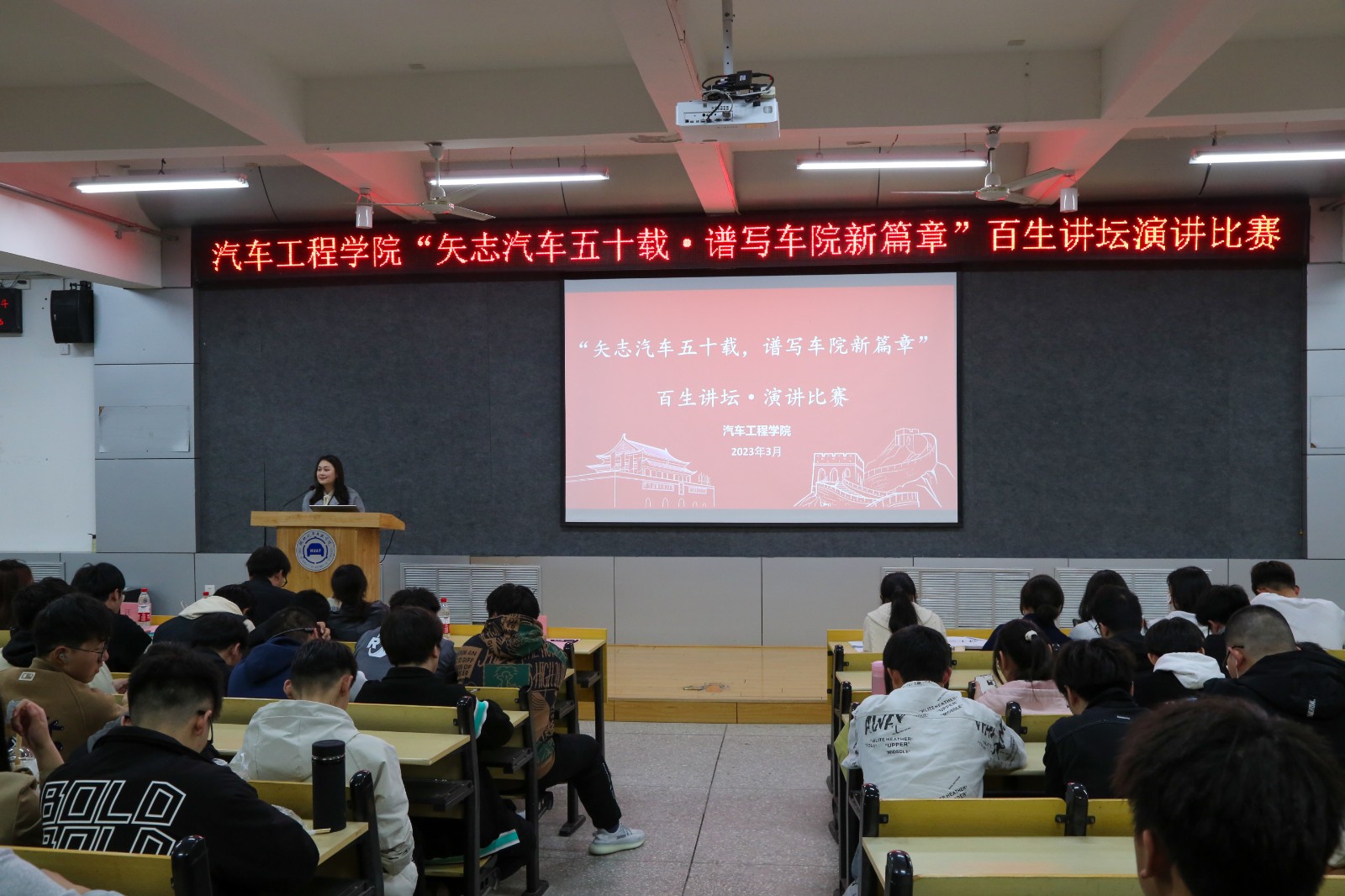 于6113教室开展以“矢至汽车五十载,谱写汽车新篇章”为主题的百生讲坛演讲比赛。台湾成人片
