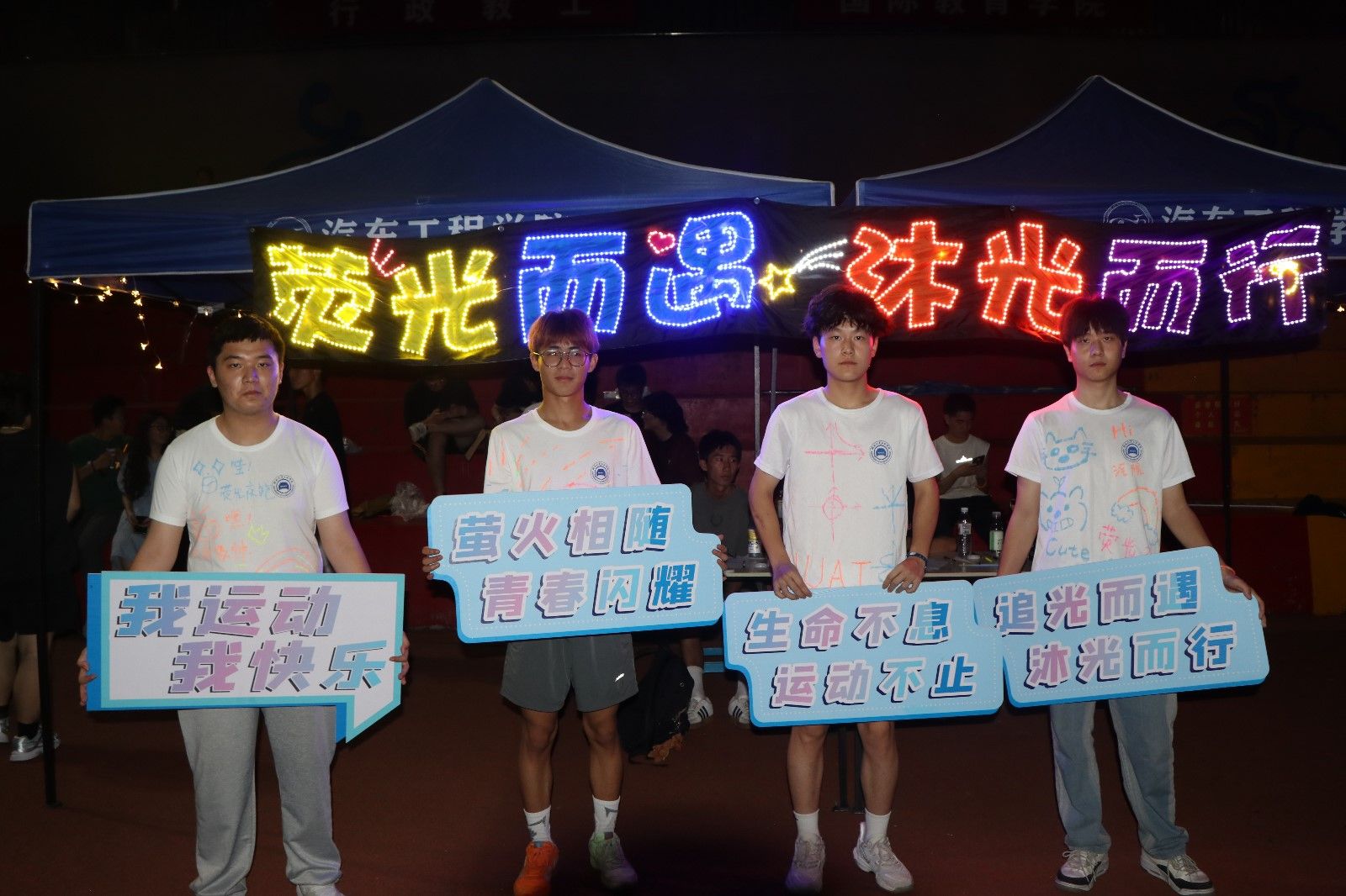 活动开始前,同学们佩戴好荧光手环,在T恤发放区领取白T恤,随后脑洞大开,发挥天马行空的想象力在T恤上随意涂鸦,展现出参与者爆棚的创作欲和个性化审美,现场气氛热烈。