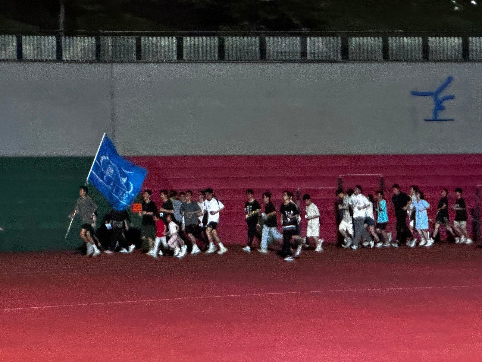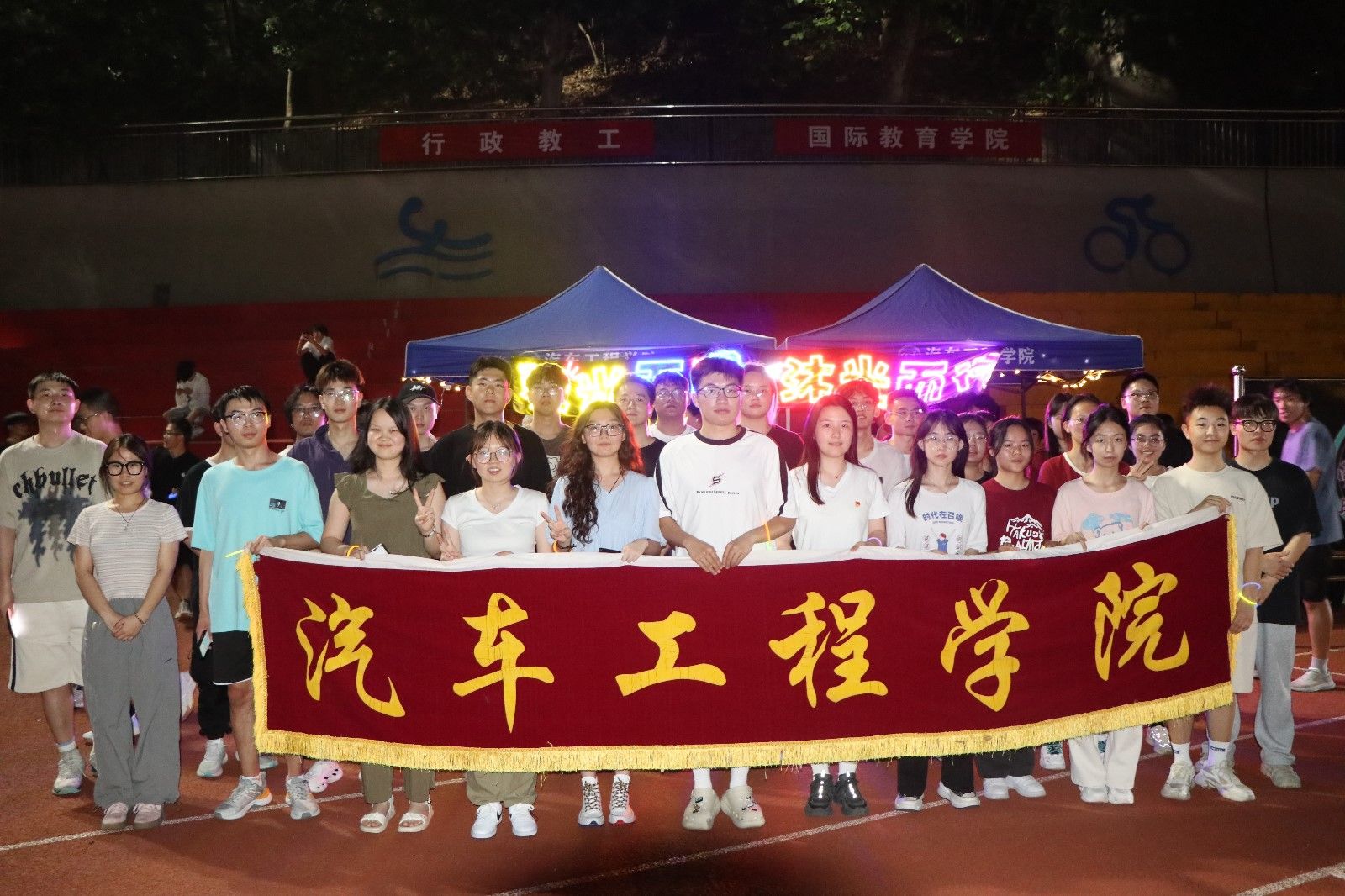 在田径场举办荧光夜跑活动,来自全院各年级200余名同学参加。