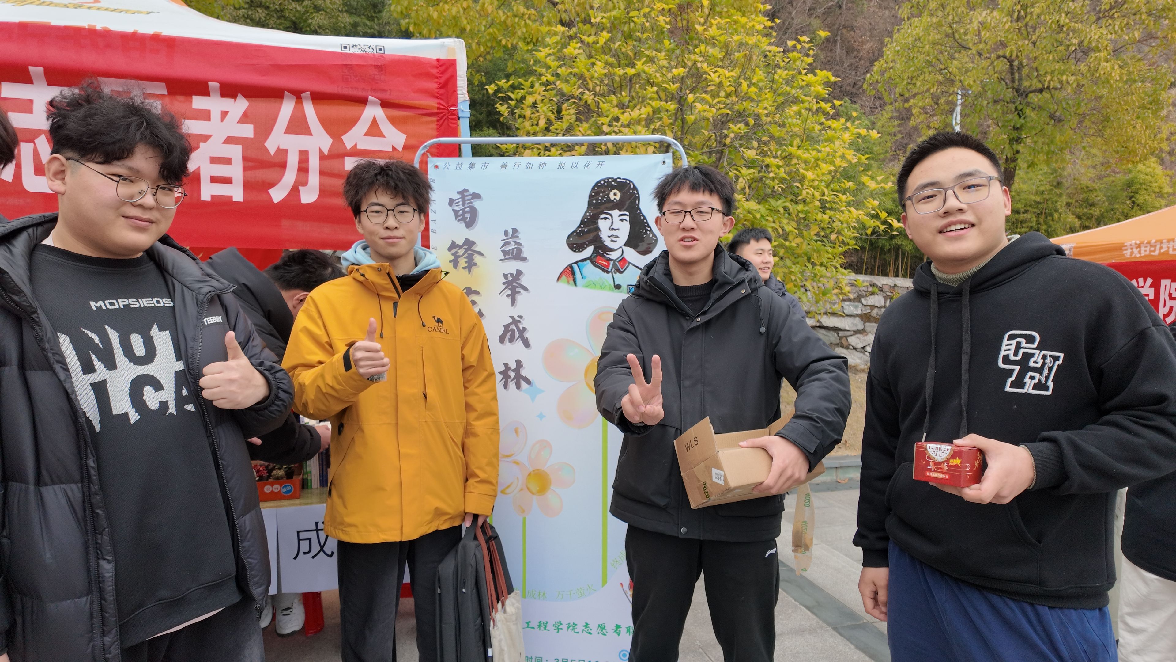 活动还设置了“雷锋主题易拉宝”公益打卡点,专业摄影志愿者为参与者拍摄纪念照片,定格美好瞬间。同学们纷纷表示,希望通过分享照片,将雷锋精神传递给更多人,带动身边的人加入公益行列。参与者李同学激动地说:“盲盒交换环节让我印象深刻,它让闲置物品重新焕发生机,让爱心得以传递。我希望通过自己的行动,让雷锋精神在更多人心中生根发芽。”
