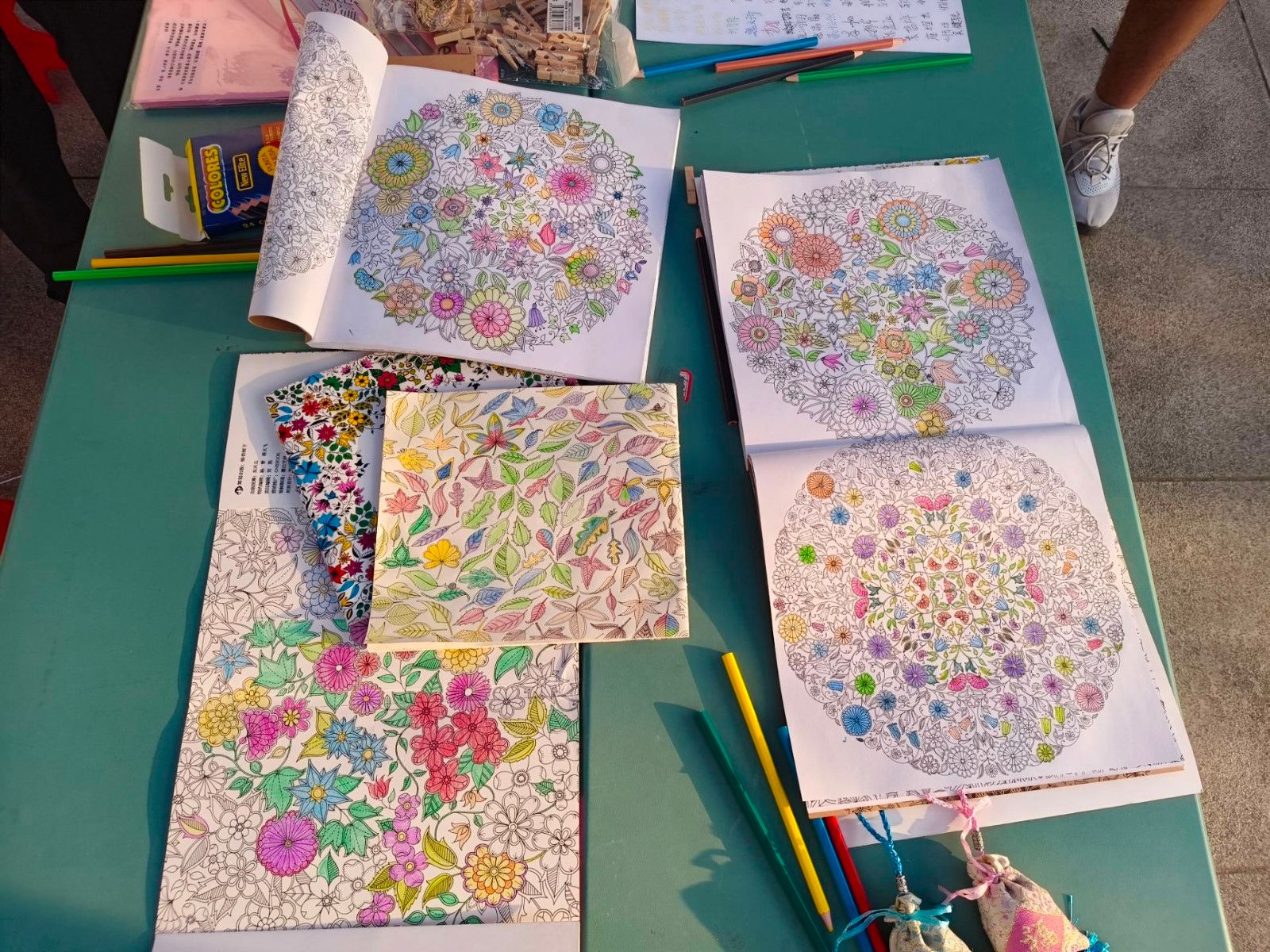 活动现场共设夹球跑、跳格子、套圈及涂色四大体验区,参与者在完成趣味挑战后可获得印章,并凭集章数量兑换精美礼品。在夹球跑项目中,参与者两两一组背靠背运送气球,默契配合中传递欢乐;跳格子区域里,师生单脚跳跃重温童趣,专注的步伐踏走烦恼;减压涂色区提供自由创作空间,缤纷色彩抚平浮躁心绪;套圈挑战则让参与者在精准投掷中收获成就感。