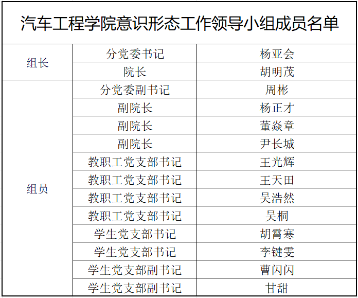 意识形态工作领导小组,负责全院意识形态工作的组织和领导。将意识形态工作责任作为各党支部、各系、各办公室考核。