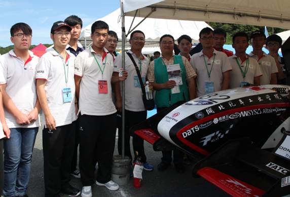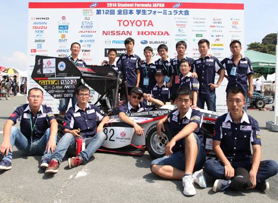 这一年他还带领着团队16人参加了在日本静冈由日本汽车工程学会举办的2014年第十二届日本方程式汽车大赛。日本赛需要办理海运,签证等各种事情。运输是他亲自跟随货车押车从十堰到威海港口,办理签证他联系日本组委会,由于签证办理麻烦迟迟办不下来,最后打电话联系到日本大使馆在临走前一天办好了所有人的签证手续。日本赛被称为全世界大学生方程式汽车大赛最严谨的比赛之一,日本的汽车水平也是世界一流的,日本比赛的裁判均是来自各大汽车公司的设计人员和工程师。日本有很多实力强劲的车队包括京都大学,大阪大学,名古屋大学,竞争可谓十分激烈,他们的赛车受到了裁判的一致好评,加工制作水平全场一流。在车检中他们很顺利的通过了最严格的一检,设计答辩中他用熟练的英语与裁判交流介绍,经过4天的激烈较量他所带领的团队在88支燃油车队中取得了总成绩第十八名(也是中国大学生方程式赛车队目前在日本赛中取得的最好成绩)CAE软件分析第三名,新秀第一名和完赛奖。