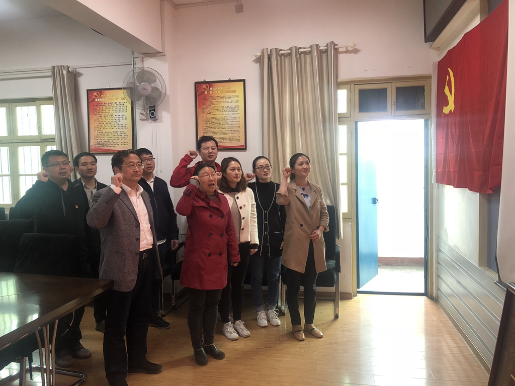 各支部在活动之初组织全体党员佩戴党徽、重温入党誓词,随后由支部书记等带领大家一起学习了习近平总书记两会期间六下团组讲话要点、习近平主持召开台湾成人片