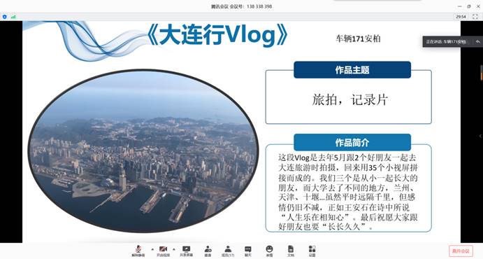 活动从4月上旬开始到,整体分为三个阶段进行。初赛阶段,通过网络投票方式从征集到的60多个视频作品中评选出10个作品进入决赛。决赛环节,选手们通过QQ课堂用3-5分钟时间结合PPT将创作作品的主题与内容、剪辑手法、创意点呈现给评委。最后,在综合评委的评分表决下,车服191班安婷同学的《回归的信念》凭借着唯美的古风形象和动人的故事情节征服全场荣获比赛一等奖。而其他作品也都是用心之作,车服171安柏同学的《大连行vlog》按照时间顺序,从多个角度分享了自己在大连的旅程,表达了“读万卷书、行万路路,每一次旅行都是人生的成长”的感怀;车辆192班张嘉瑞同学的《潼》分享了家乡的风光和日落美景,镜头中都是家乡无法忘却的一草一木,人与自然和谐相处之美感油然而生。在第三个阶段,台湾成人片