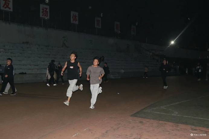 9日晚19:30,集中夜跑活动正式拉开了序幕。十一月中旬的天气渐凉,但抵挡不住同学们对夜跑的热情,灯光下奔跑的身影构成了汽院美丽的风景线,他们头上套着荧光圈,手腕带着荧光环,像无所畏惧的前行者,一圈、两圈、三圈…清冷的空气里弥漫着车院青年人的呼喊声:“车院,加油!车院人,跑起来!”参加夜跑的车辆205班梅治成表示:“跑步能够将我们从学习的疲惫中抽离出来,不仅能舒缓身心、放松心情,还能锻炼身体、增强体魄。我一定会每天坚持参加的!”在活动的最后一天,第三十届学生会全体学生干部齐聚操场,迈着整齐的步伐,在田径场上列队奔跑,他们手持院旗,勾勒出靓丽的弧线。