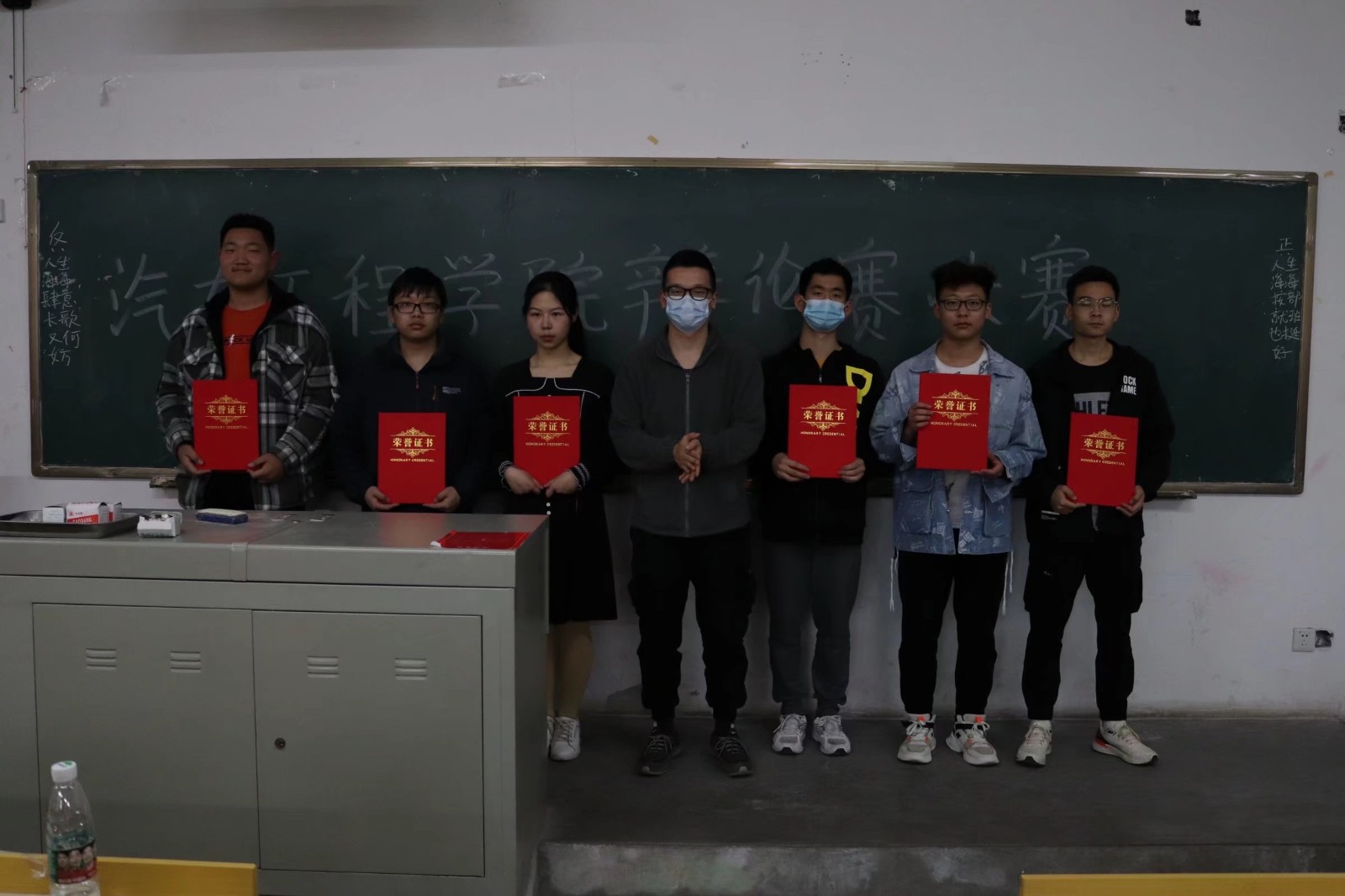 精心筹备此次辩论比赛,在前期的集中培训之后,经过激烈的初赛、复赛、半决赛等环节车辆211、车辆214、车辆216和车辆217四支队伍脱颖而出,成功入围决赛。此次比赛采取四进二、二进一两轮制的规则,通过抽签决定辩题及正反方,双方选手展开了精彩的辩论。正方辩手引经据典,充分利用事实论证,妙语连珠;反方辩手不甘示弱,言辞犀利。赛场上,双方辩手不失风度,据理力争,以稳健的台风、巧妙的辩论技巧及扎实的专业知识获得在场评委和观众的一致好评。最终经过激烈的角逐,车辆211班获得了本次比赛的冠军,贺庭祺为夺冠队伍颁发证书。
