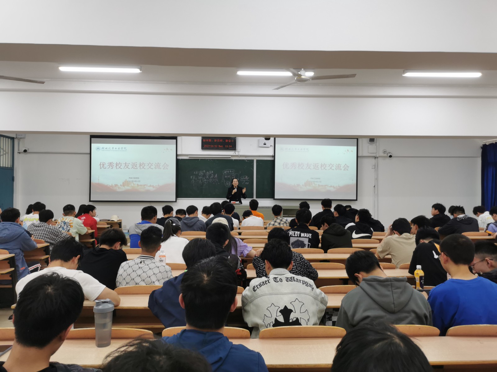 在5203教室举办了优秀校友交流分享会。此次经验分享会特意邀请了广汽乘用车宜昌分公司技术质量部的龙海粟和黄海涛两位优秀校友,分党委副书记杜昕俊以及100余名学生代表参加会议,学工办主任胡霄寒主持会议。