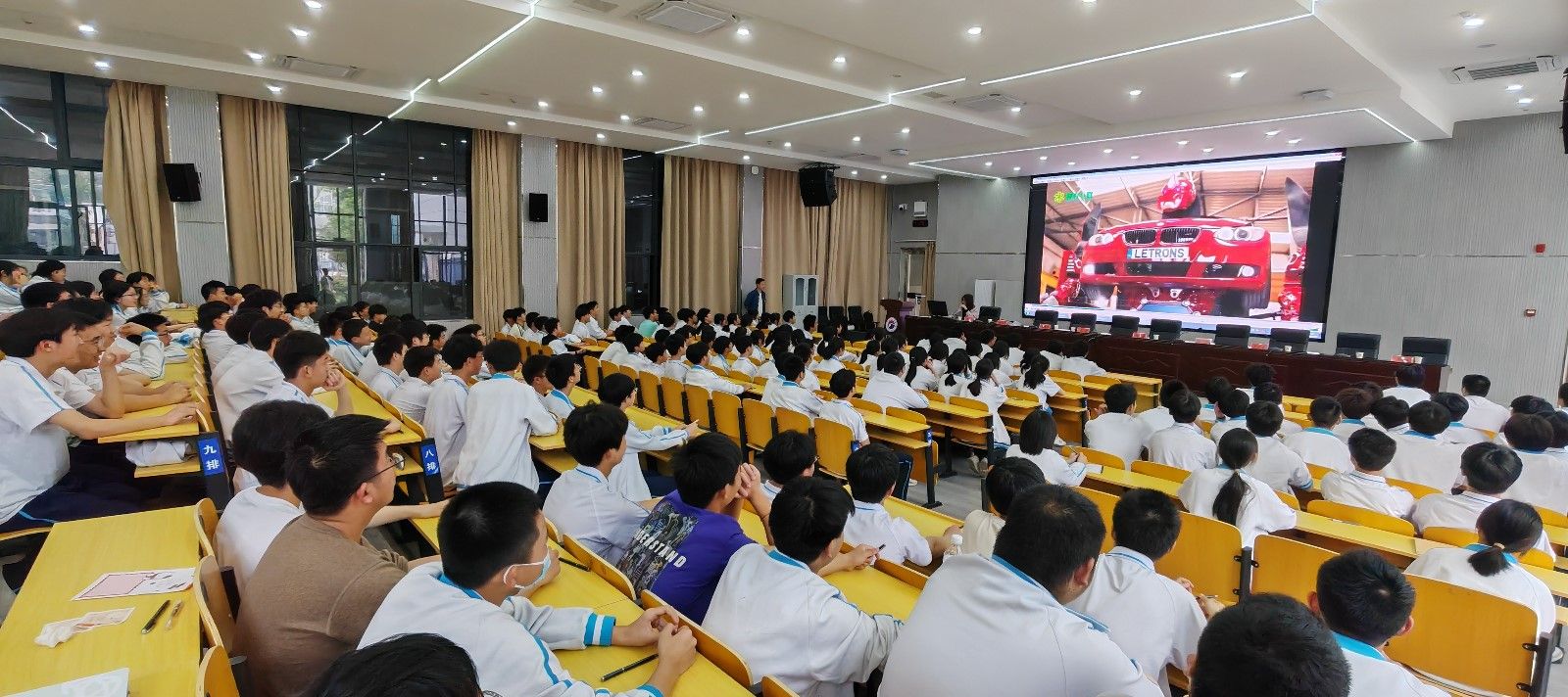 的办学特色、专业设置、师资队伍、实践平台、校园环境、就业前景等情况。随后结合国内外前沿汽车技术以《改变世界的机器—汽车文化探秘》为题,为参会学生开展了一堂生动的科普宣讲,介绍了汽车文化启蒙知识,并将台湾成人片