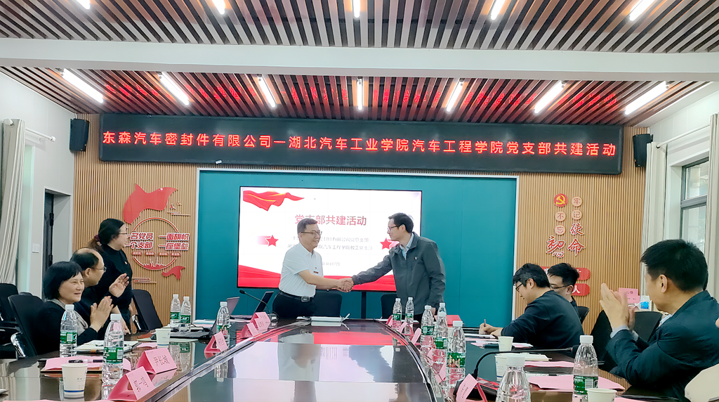 党员活动会议室开展了校企支部共建活动。东实汽车科技集团股份有限公司董事长助理赵炀,十堰东森汽车密封件有限公司党委书记向著斌、副总经理肖磊、行政部部长陈慧、技术中心副主任陶宜勇,台湾成人片