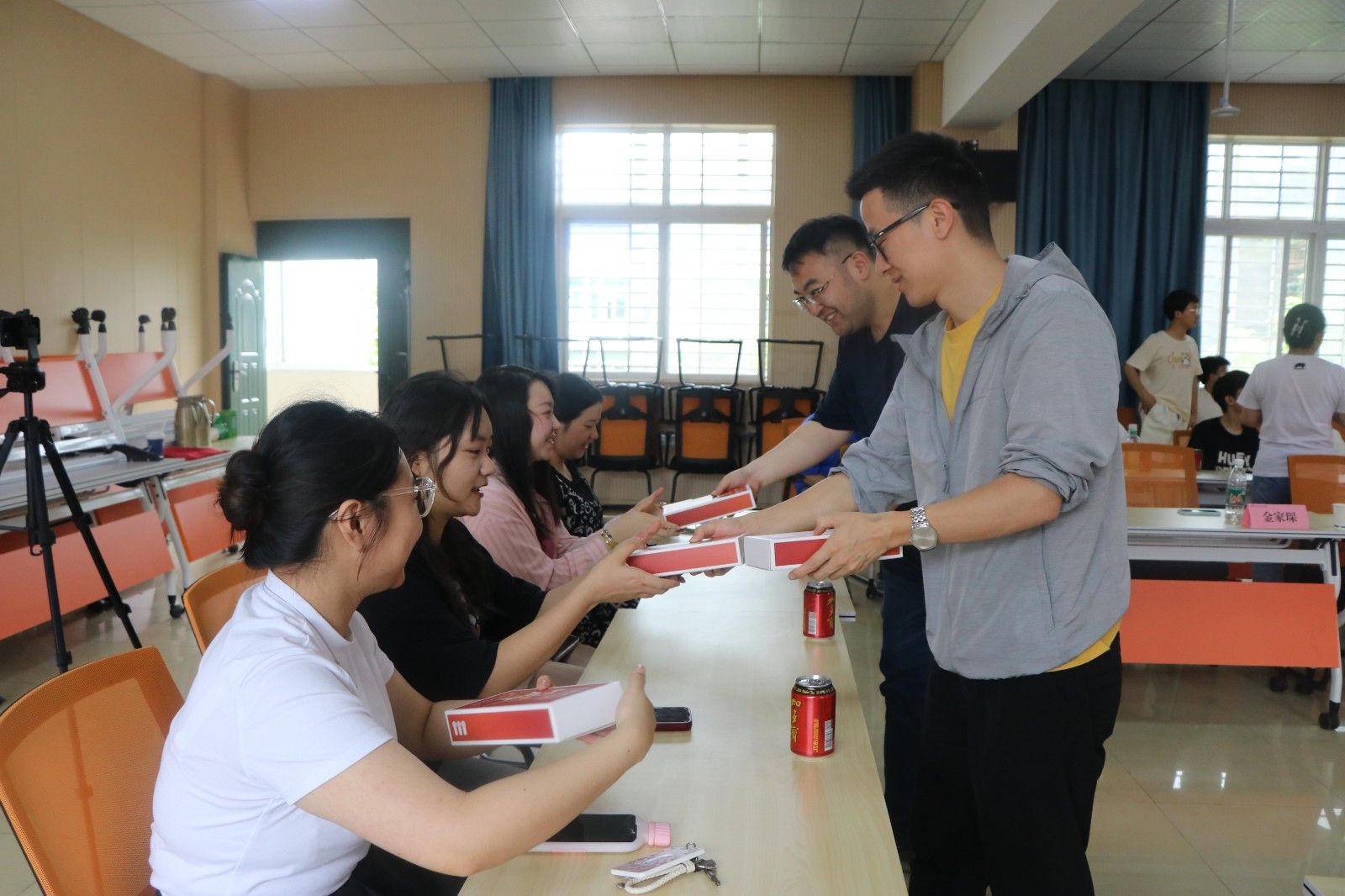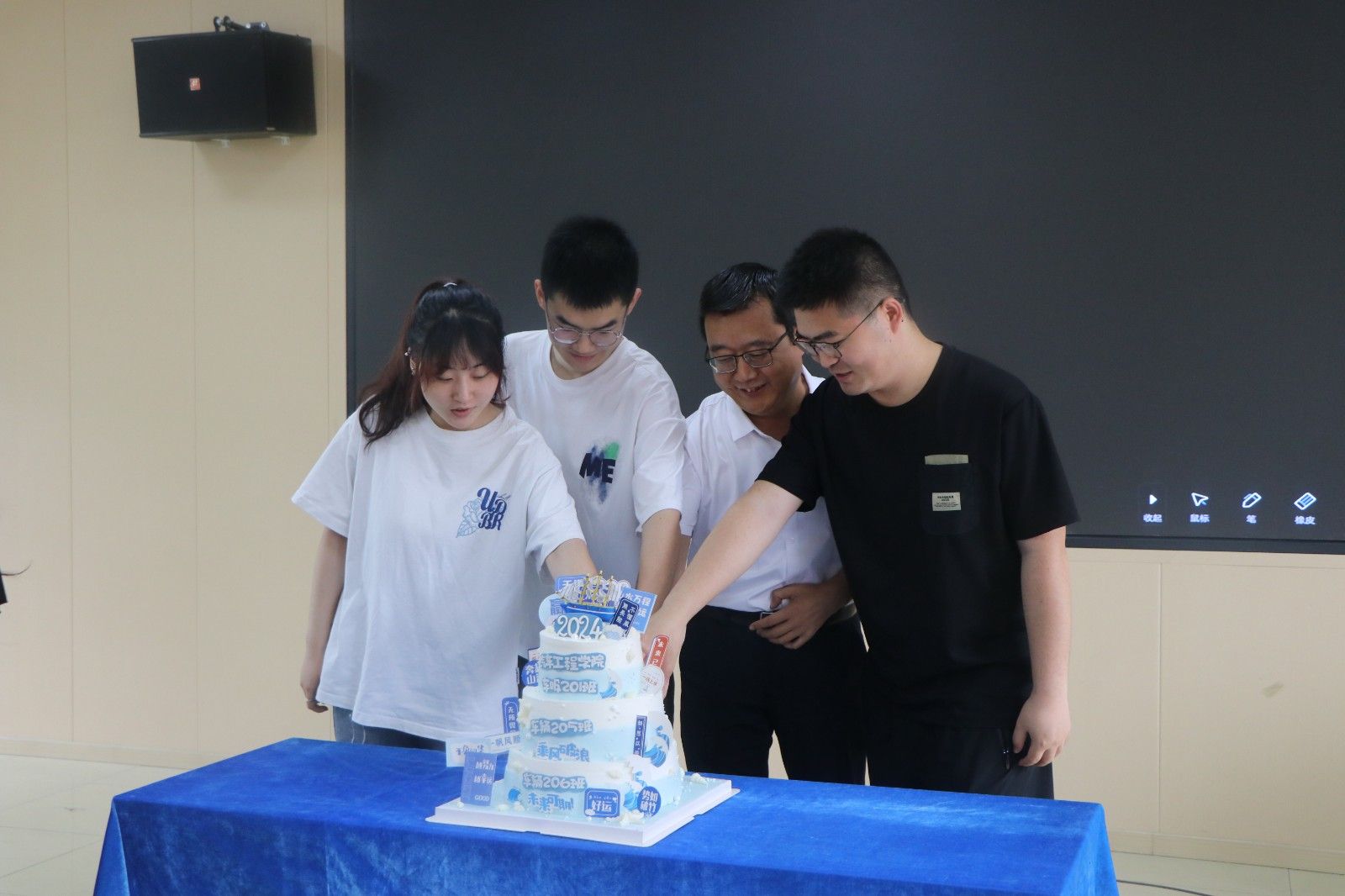 分党委副书记周彬为2024届校友联络员颁发聘书,在场领导和教师们为学生们共同送上毕业礼物,表达了对2024届毕业生顺利毕业的祝贺。