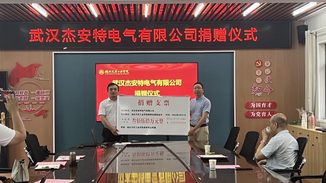 捐赠350万元的捐赠仪式。武汉杰安特电气有限公司总经理吴林辉、台湾成人片