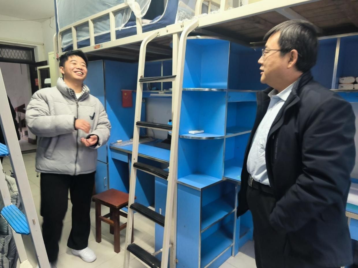 走访过程中,老师们细致询问同学们寒假社会实践与返乡见闻,重点了解学生返校后的身心适应情况,针对学业规划、科研参与、就业准备等个性化问题给予指导建议。党委书记杨亚会特别鼓励同学们:“要把握春季学期‘窗口期’,在夯实专业基础的同时,积极参与学科竞赛和文体活动,通过科研项目提升创新思维,依托体育锻炼锤炼意志品质,实现全面发展。”