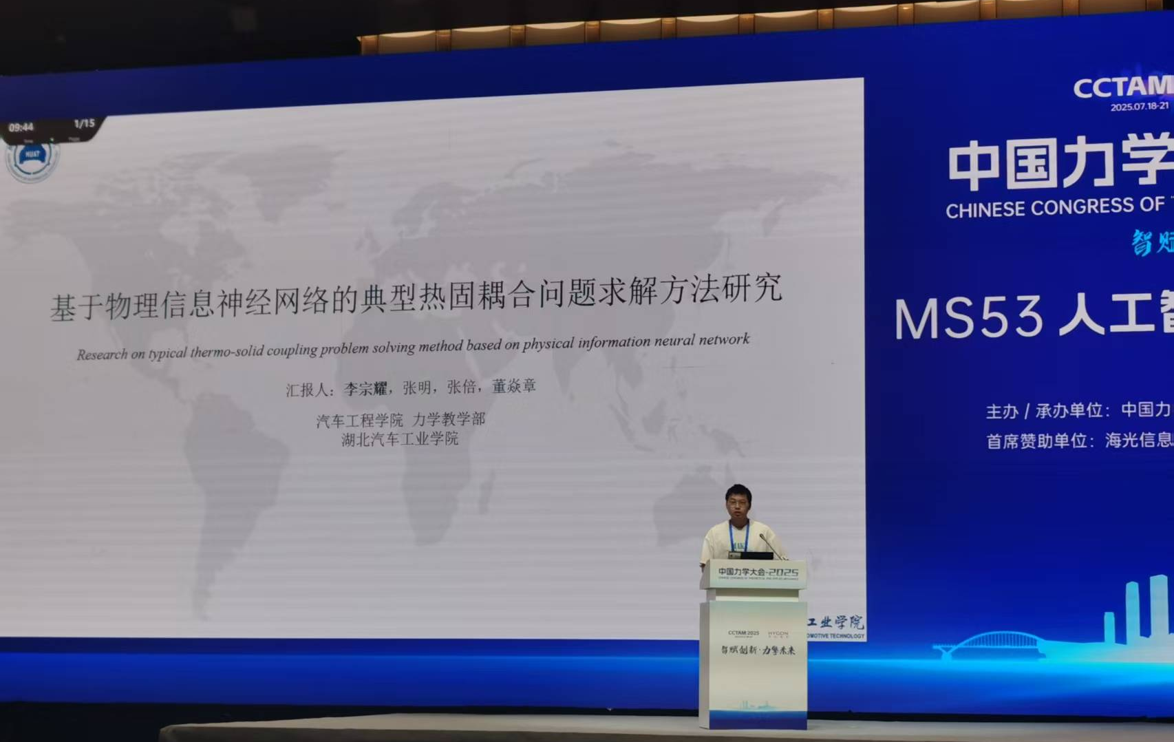 研究生李宗耀在人工智能在力学中的应用分会场作了题为《基于物理信息神经网络的典型热固耦合问题求解方法研究》的学术报告,展示了台湾成人片