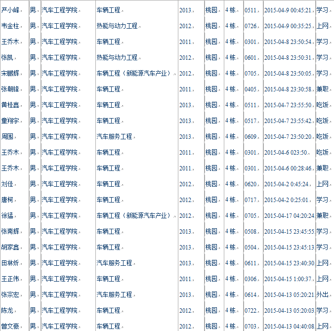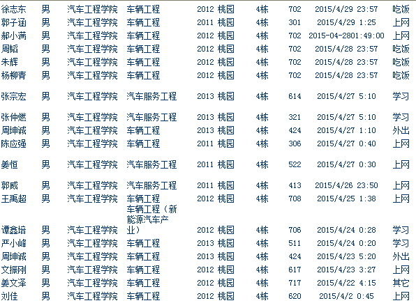备注:数据中含方程式赛车车队成员、智能车队成员,我们将对车队同学予以核实后免于相关处理,请注意劳逸结合,合理安排休息时间。