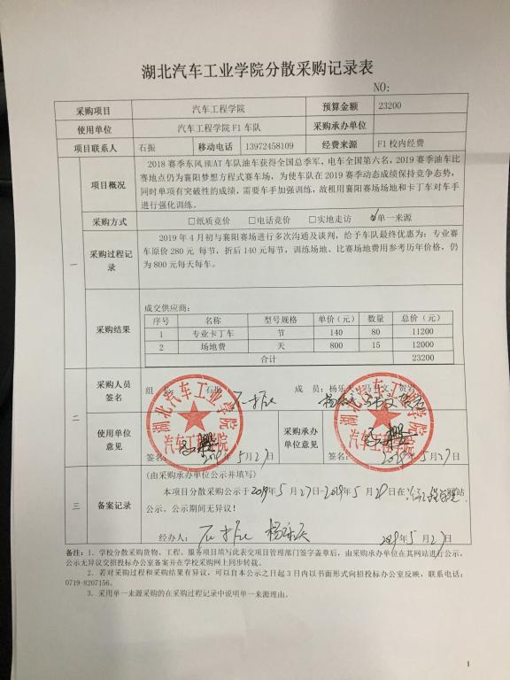 F1车队场地分散采购公示