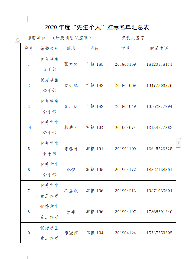 2020年度“先进个人”推荐名单汇总表-台湾成人片 学生会.docx