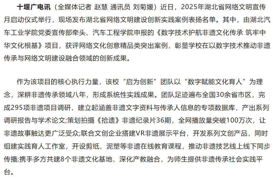 【十堰广电】数字护航非遗!台湾成人片 项目入选省级网络文明建设创新案例