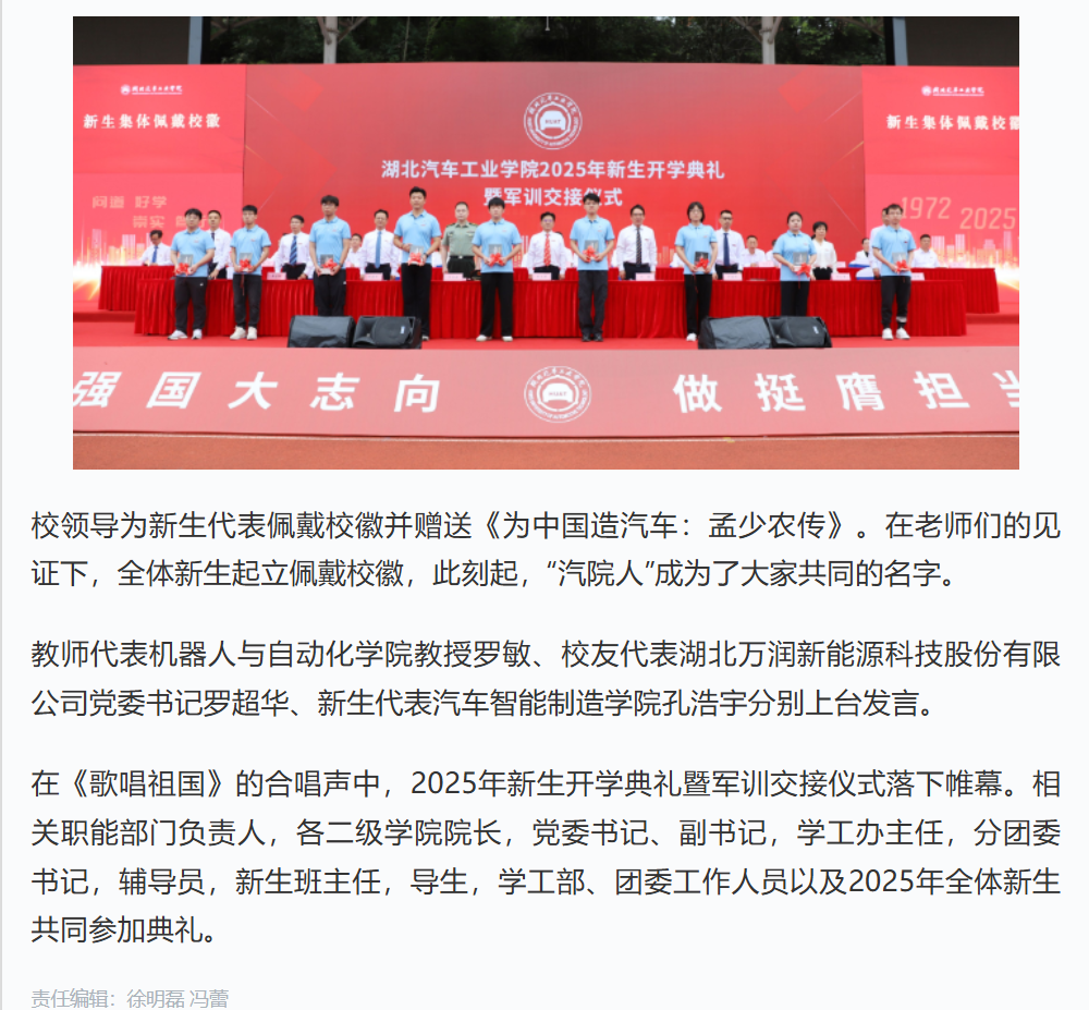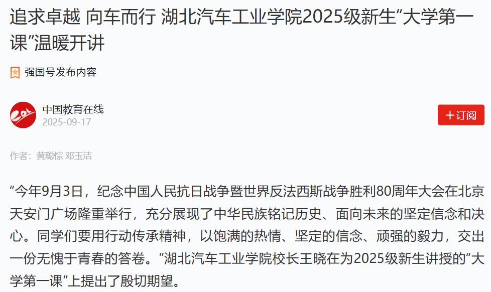 【中国教育在线学习强国号】追求卓越 向车而行 台湾成人片 2025级新生“大学第一课”温暖开讲