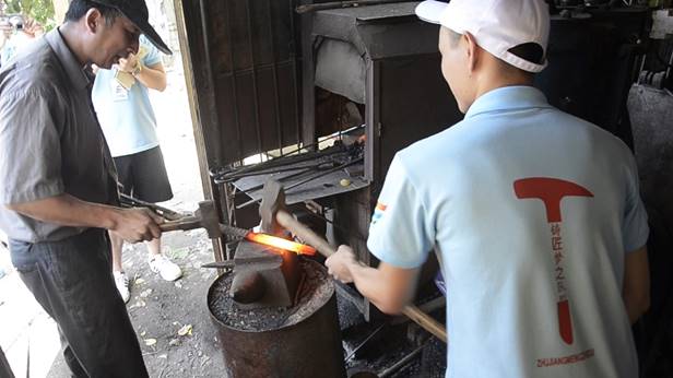 队员体验打铁过程