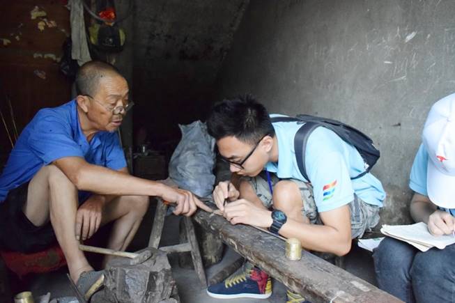 在暑假期间,他们顶着烈日,深入农村,到十堰郧西,房县,郧阳等各地,实地考察铁匠铜匠的各类铁器、铜器及其制作的工艺流程;与当地铁匠、铜匠、村民进行沟通与交流,了解打铁、打铜技艺发展现状;详细记录打铁、打铜工具及其作用。当老铁匠谈起曾经辛苦学艺,吃尽苦头,如今行业却如此没落,如此鲜明对比,令老人不禁流下心酸眼泪。如今虽生意惨淡,但铁匠们还是坚持着做着这一行业,并且认真对待每一件自己的作品,他们从没想过放弃,只为少数需要的人,时刻准备着。