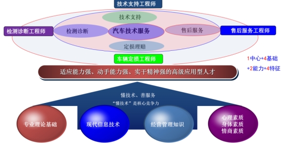 本专业适应国家及地方经济建设和汽车行业发展新需求,旨在培养德、智、体、美、劳全面发展,拥有健康体魄与合作意识,恪守职业道德,掌握扎实的基础理论和汽车服务工程专业知识,具备创新意识和较强的工程实践能力,能够在汽车相关行业从事 汽车技术支持、检测诊断、保险理赔、售后服务及管理等工作的高级应用型人才。