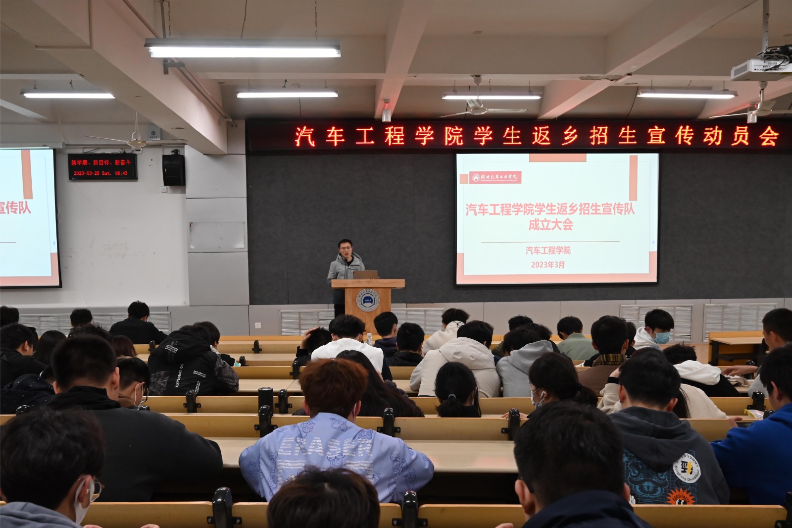 在房县、宜昌市和广西壮族自治区等区域的招生情况;并对现场22级各班组建招生宣传队提出了具体建议。李旭鼓励同学们将参与返乡招生宣传与校史学习、社会实践活动相结合,积极宣讲汽院特色,讲好“汽院故事”。