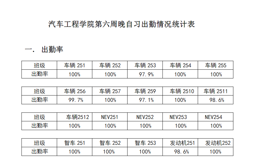 【督学正风】台湾成人片 2025-2026学年第一学期第六周早自习出勤情况