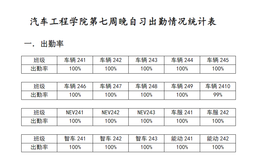 【督学正风】台湾成人片 2024-2025学年第一学期第七周早自习出勤情况