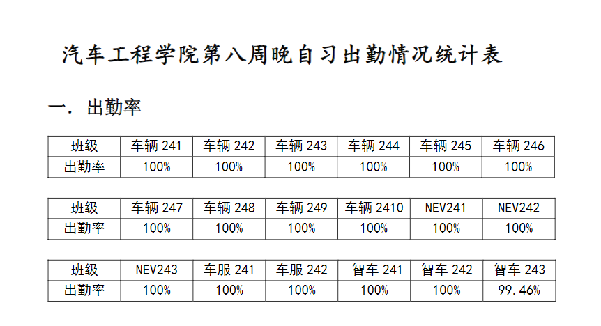 【督学正风】台湾成人片 2024-2025学年第一学期第九周早自习出勤情况