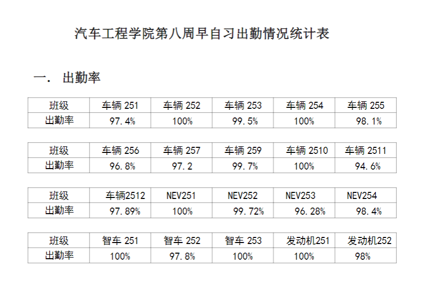 【督学正风】台湾成人片 2025-2026学年第一学期第八周早自习出勤情况